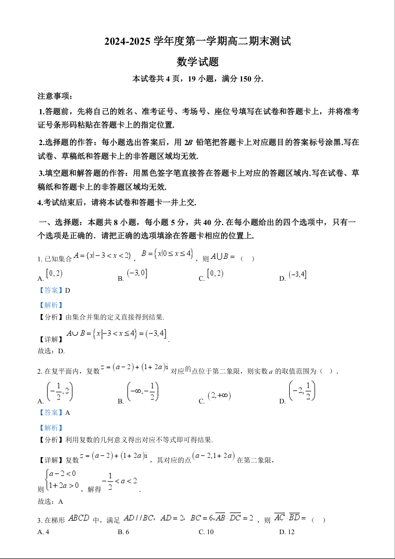 广东省阳江市高新区2024-2025学年上学期1月高二期末考试数学(解析版)
