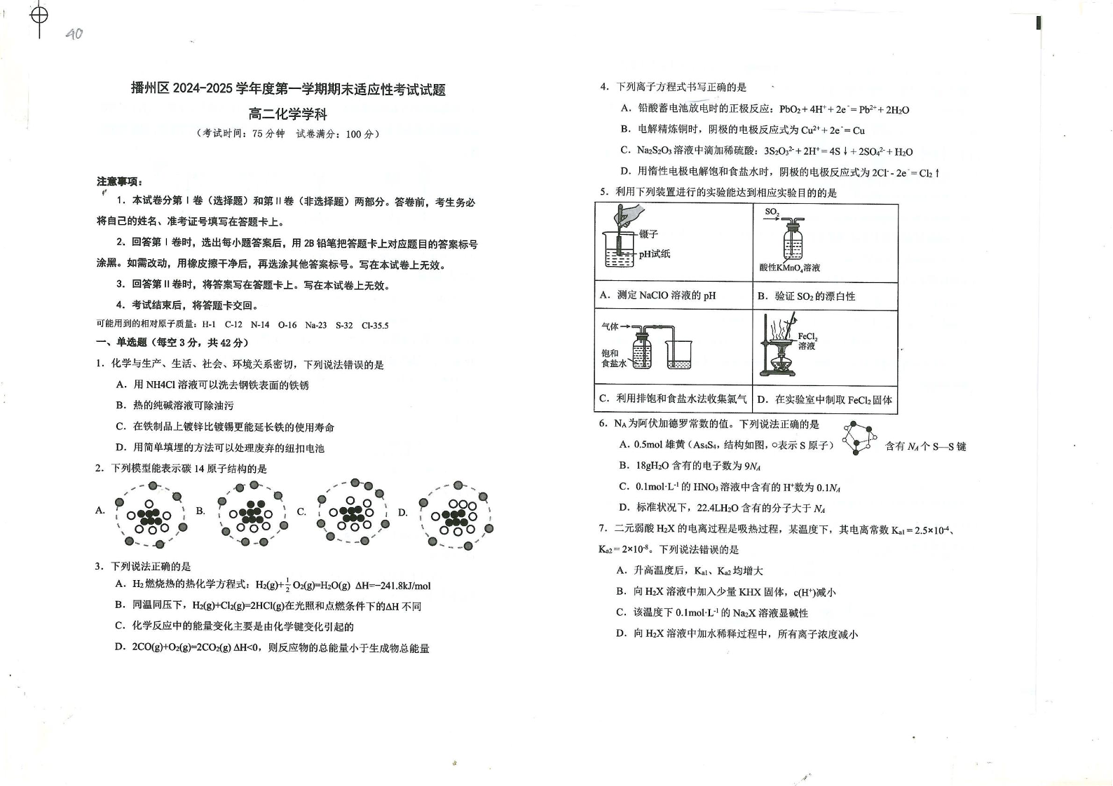 贵州省遵义市播州区2024-2025学年上学期1月高二期末考试化学