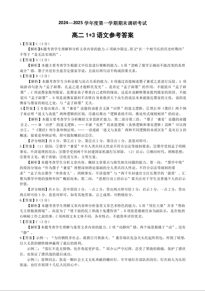 河北省保定市2024-2025学年上学期1月高二期末联考语文答案