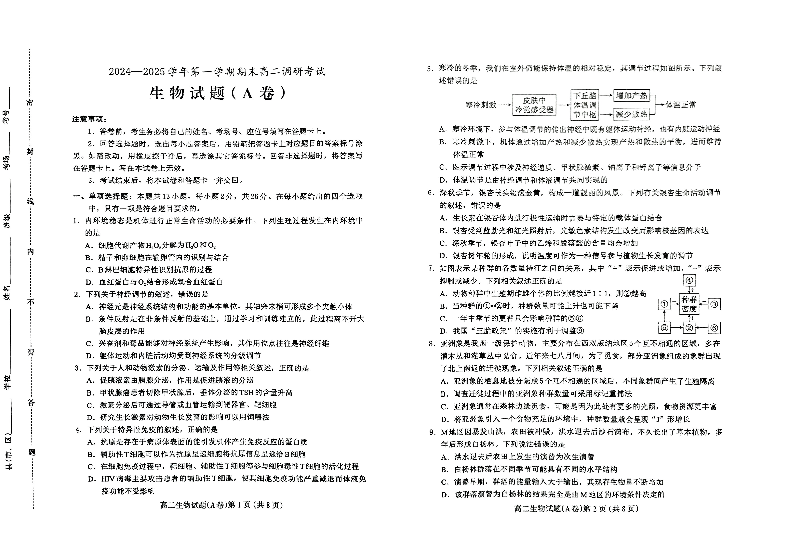 河北省保定市2024-2025学年上学期1月高二期末联考生物