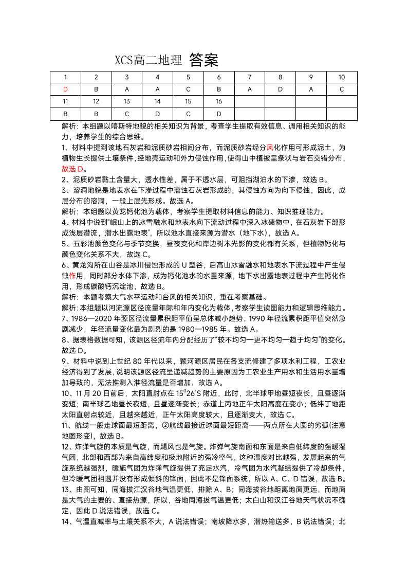 河南省许昌市2024-2025学年上学期1月高二期末考试地理答案