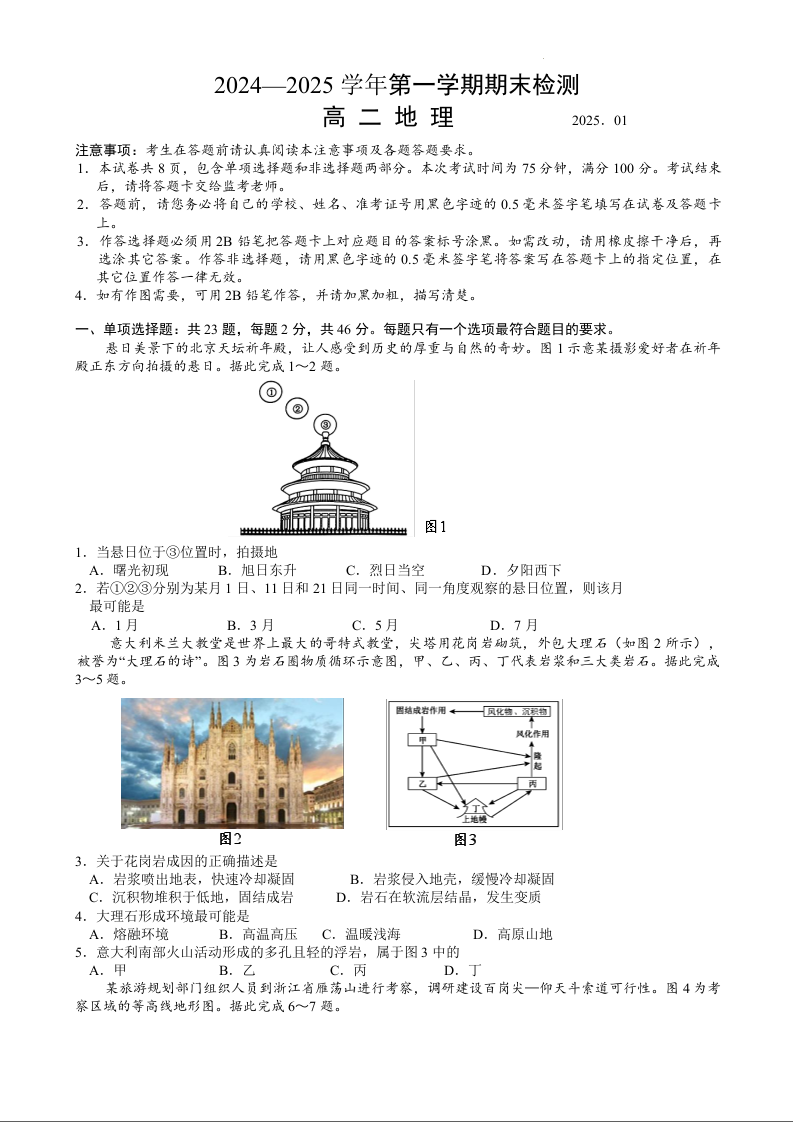 江苏省扬州市2024-2025学年上学期1月高二期末考试地理+答案