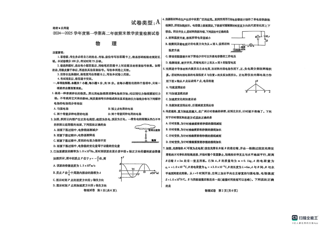 内蒙古包头市2024-2025学年上学期1月高二期末考试物理