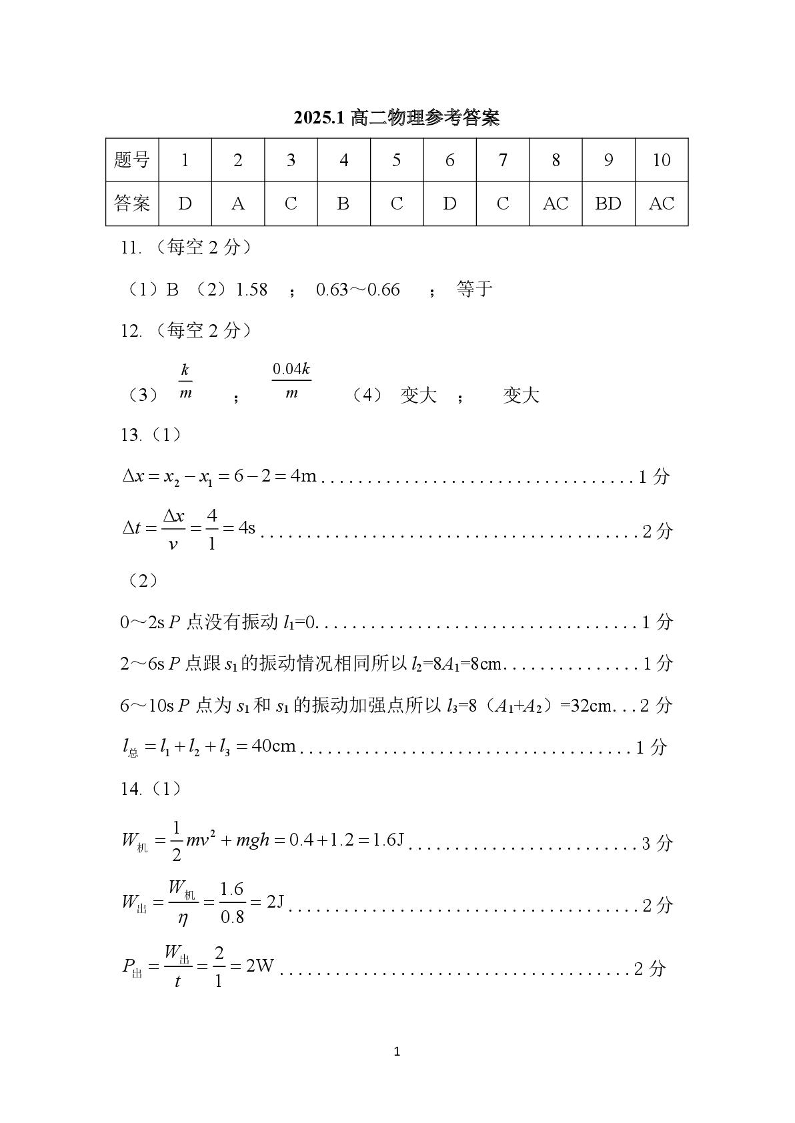 内蒙古包头市2024-2025学年上学期1月高二期末考试物理答案