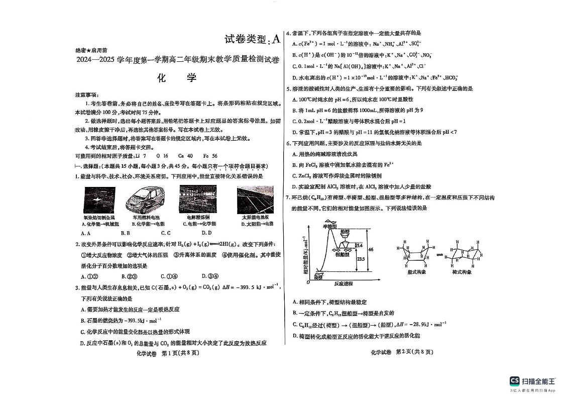 内蒙古包头市2024-2025学年上学期1月高二期末考试化学