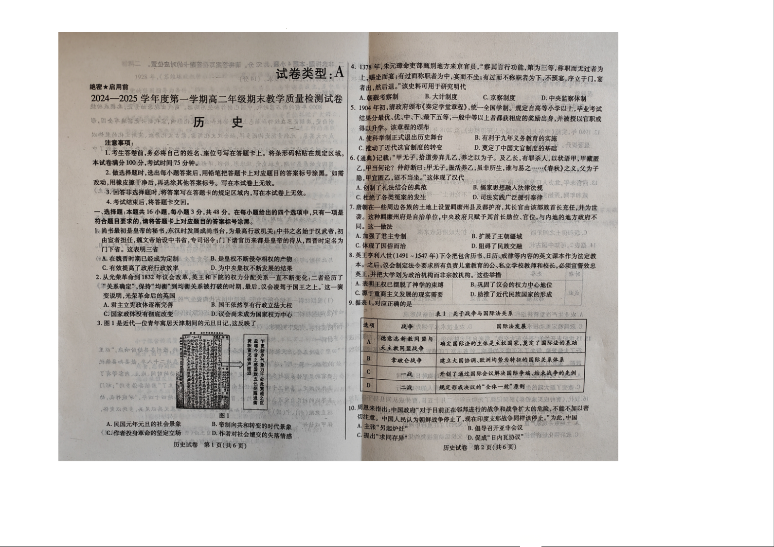 内蒙古包头市2024-2025学年上学期1月高二期末考试历史