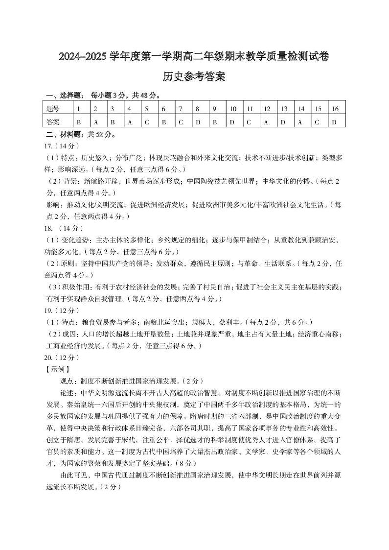 内蒙古包头市2024-2025学年上学期1月高二期末考试历史答案
