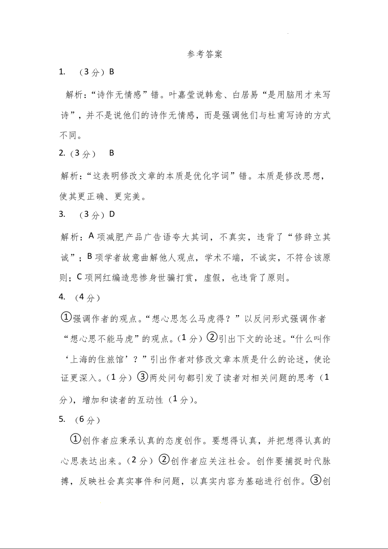 山西省运城市2024-2025学年上学期1月高二期末调研测试语文答案