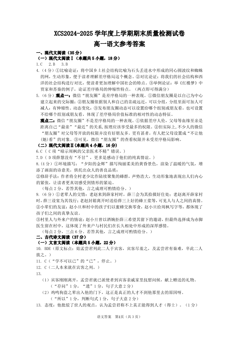 河南省许昌市2024-2025学年上学期1月高一期末考试试题语文答案
