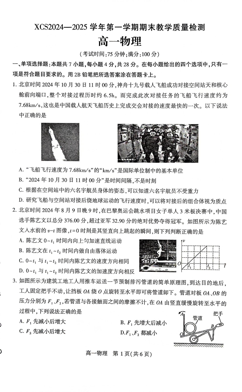 河南省许昌市2024-2025学年上学期1月高一期末考试试题物理