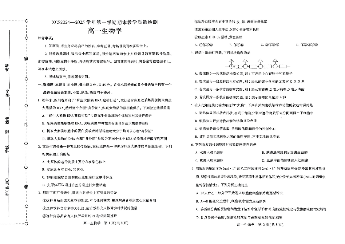 河南省许昌市2024-2025学年上学期1月高一期末考试试题生物