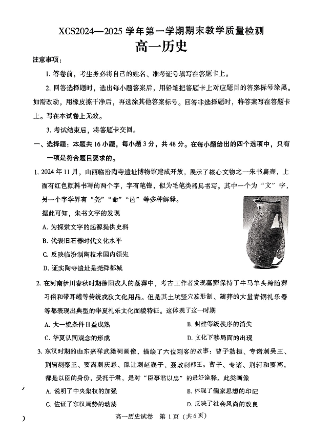 河南省许昌市2024-2025学年上学期1月高一期末考试试题历史