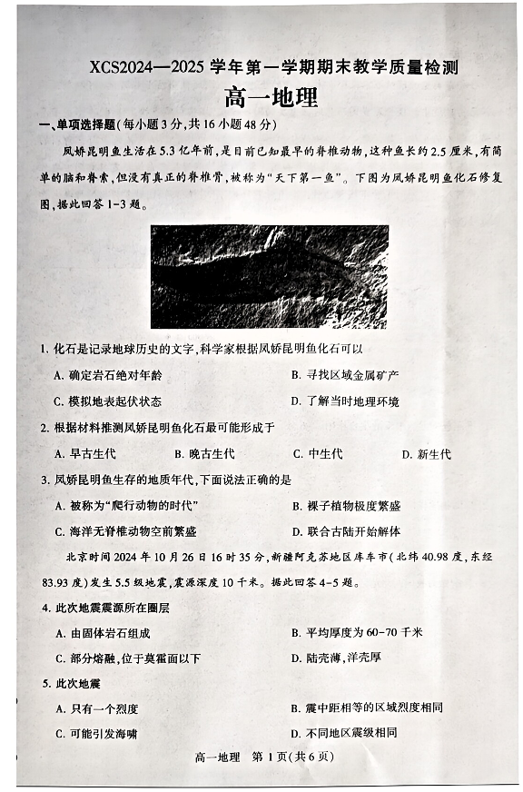 河南省许昌市2024-2025学年上学期1月高一期末考试试题地理