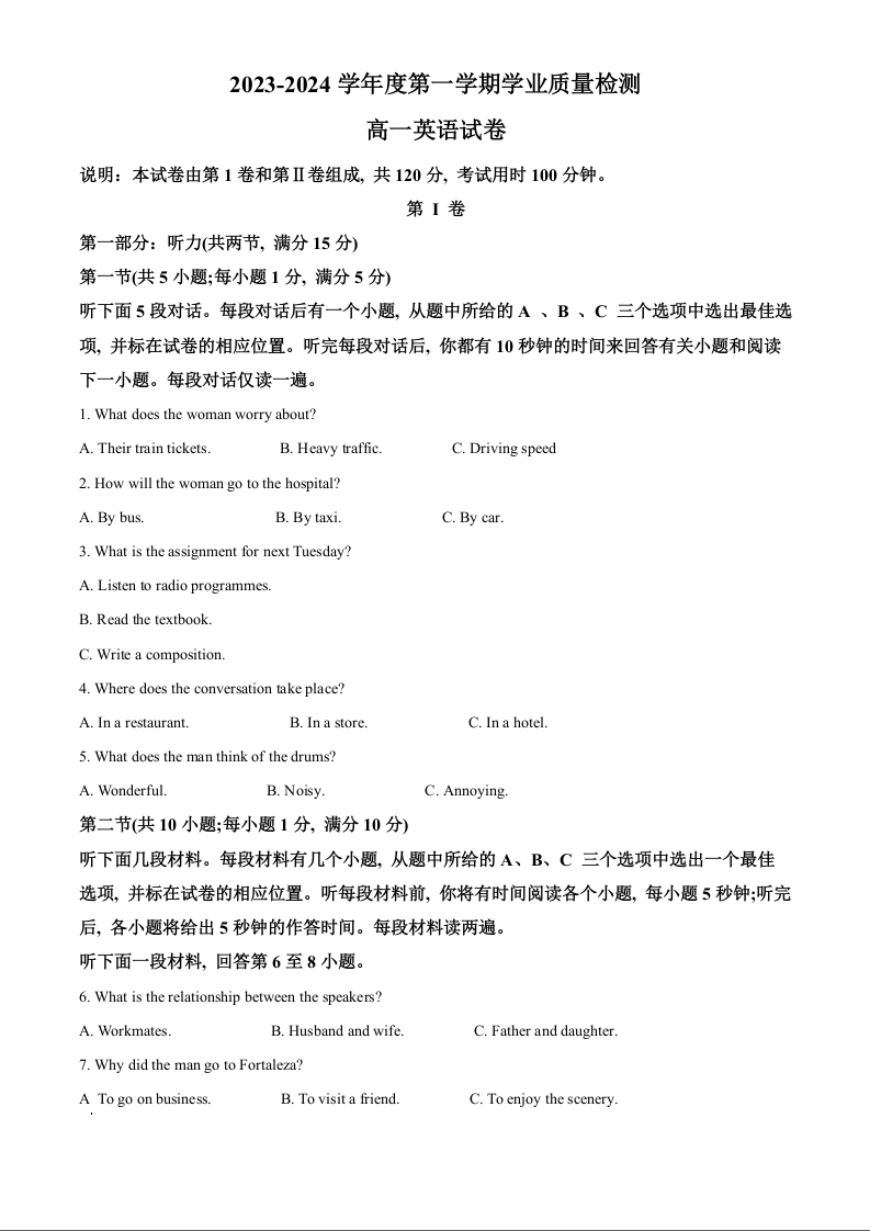 天津市西青区2024-2025学年上学期1月高一期末考试英语(解析版)