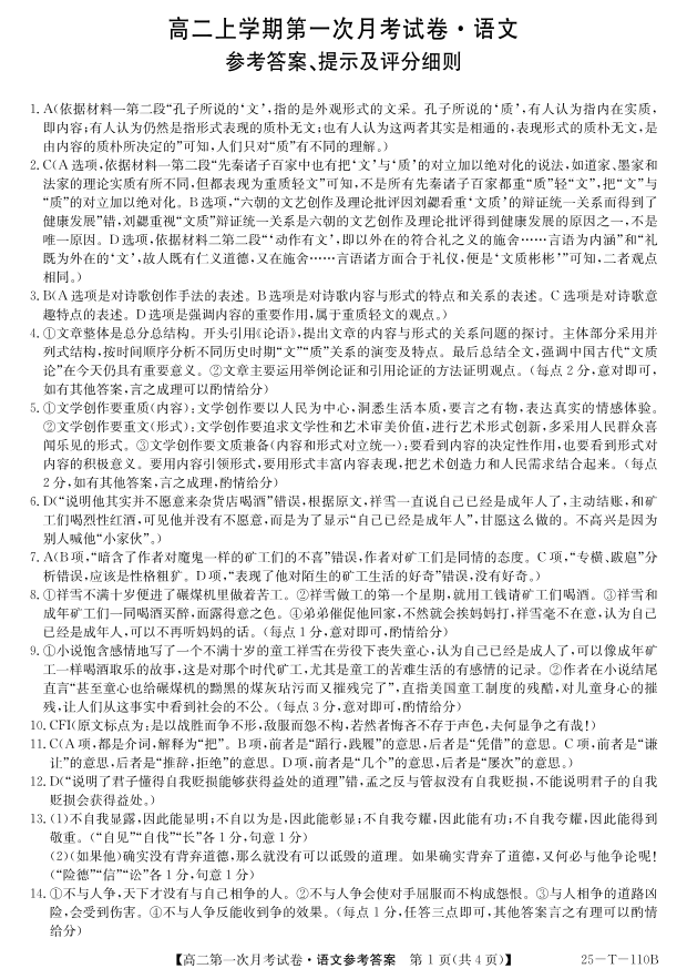 辽宁省名校联盟2024-2025学年高二上学期第一次月考语文答案