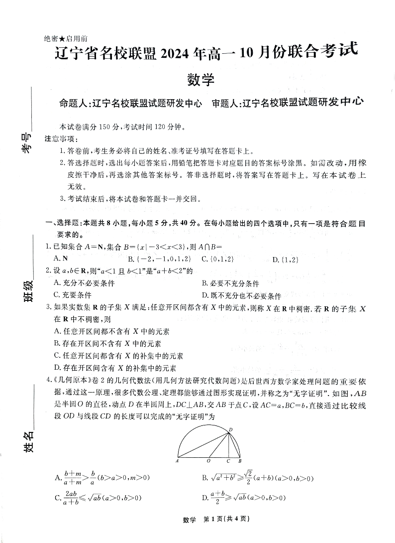 辽宁省名校联盟2024-2025学年高二上学期第一次月考数学