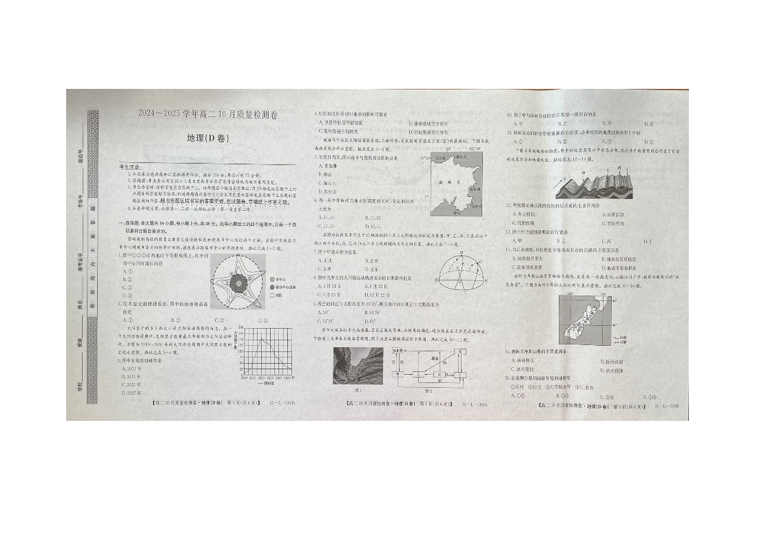 山西省大同市2024~2025学年高二10月质量检测地理