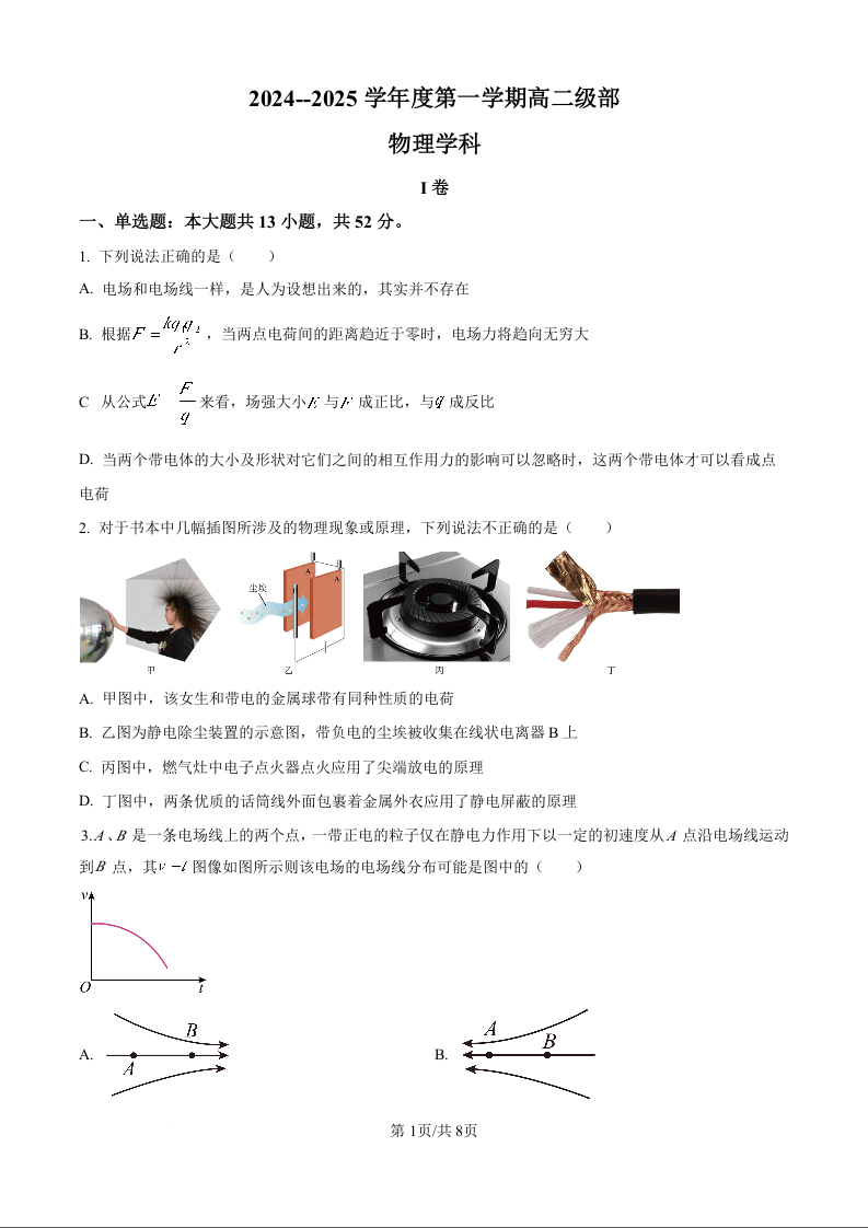 天津市天津市河西区新华中学2024-2025学年高二上学期10月月考物理(原卷版)