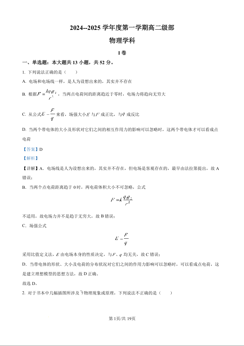 天津市天津市河西区新华中学2024-2025学年高二上学期10月月考物理(解析版)