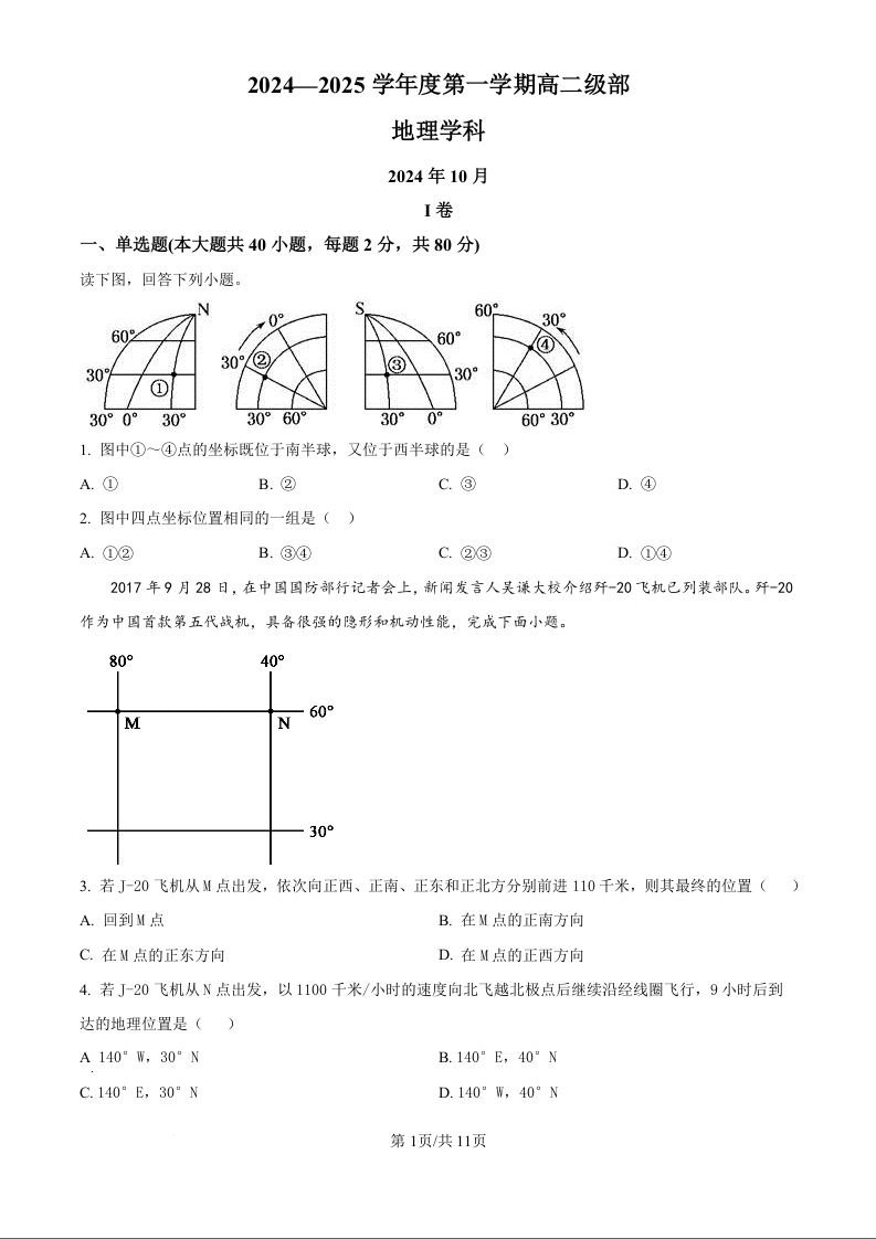 天津市天津市河西区新华中学2024-2025学年高二上学期10月月考地理(原卷版)