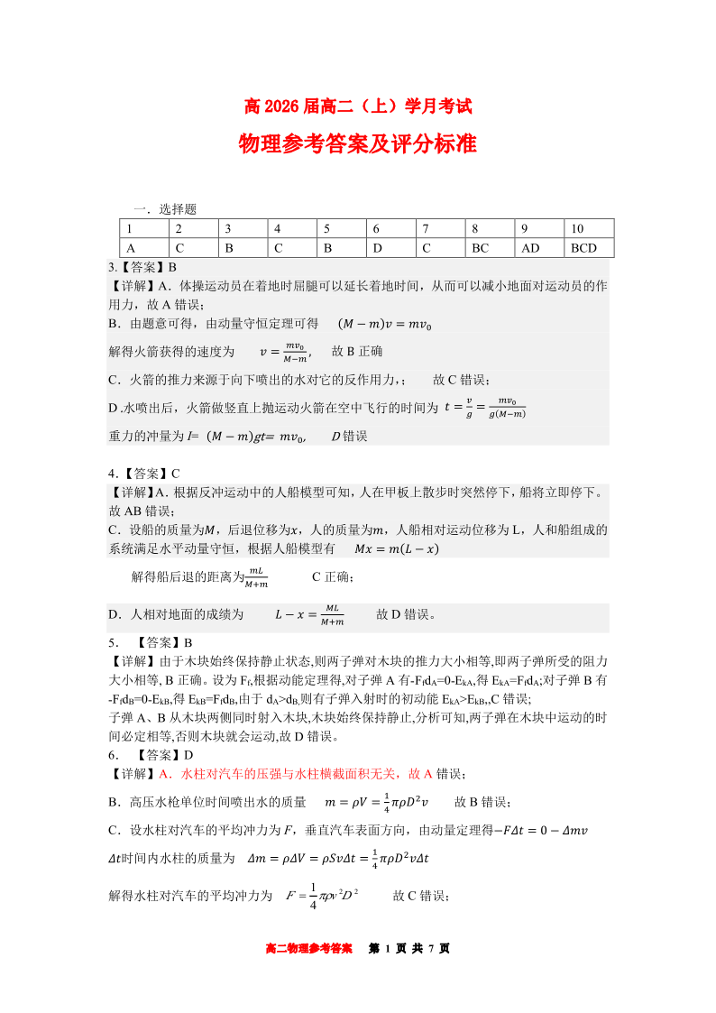 重庆市巴蜀中学教育集团高2026届高二(上)月考考试物理答案