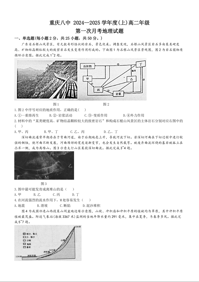 重庆市第八中学校 2024--2025学年度(上)高二年级第一次月考地理+答案