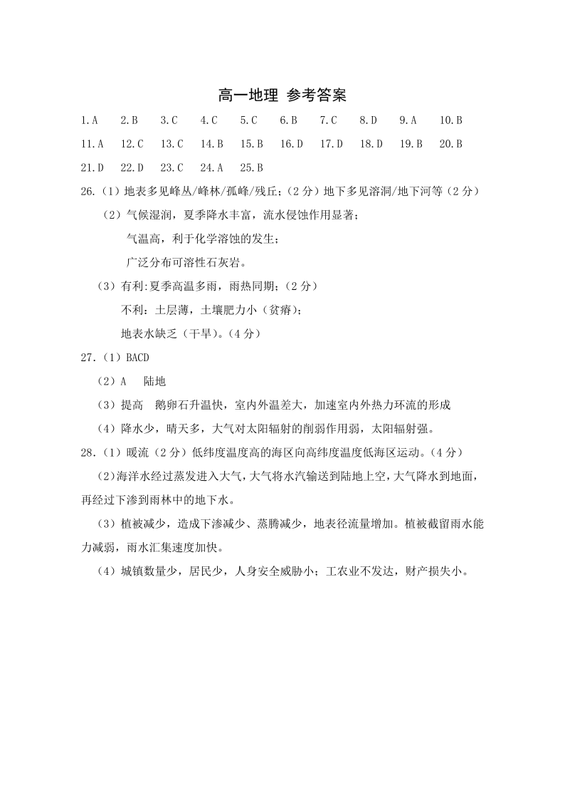 广西壮族自治区百色市2023-2024学年高一上学期1月期末考试地理答案
