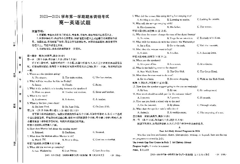 河北省保定市2023-2024学年高一上学期期末考试英语