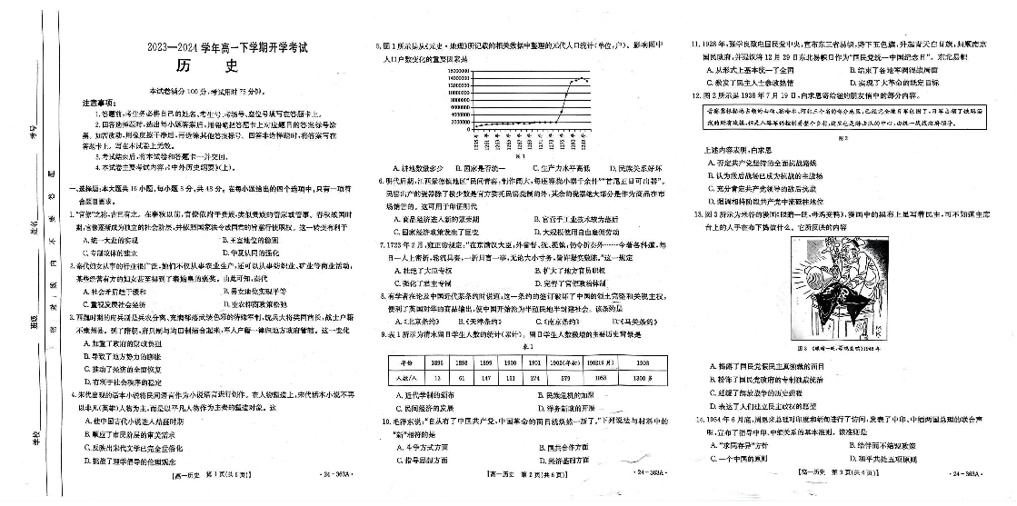 河南省许平汝名校2023-2024学年高一下学期开学考试历史