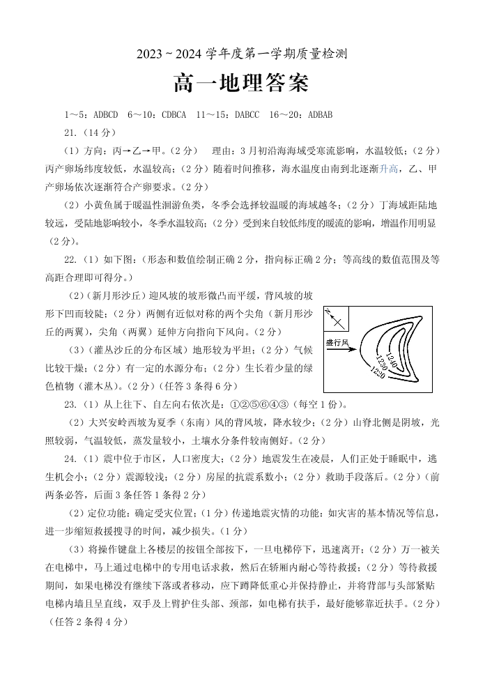 山东省枣庄市薛城区2023-2024学年高一上学期期末考试地理答案