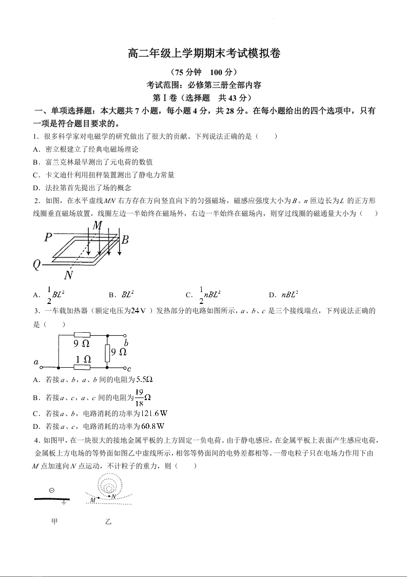 甘肃省白银市靖远县第四中学2023-2024学年高二上学期期末模拟考试物理+答案