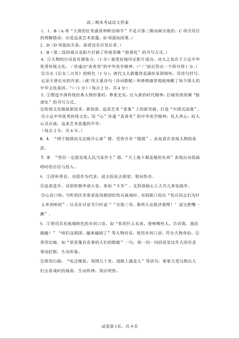 广东省深圳市盐田高级中学2023-2024学年高二上学期1月期末考试语文答案