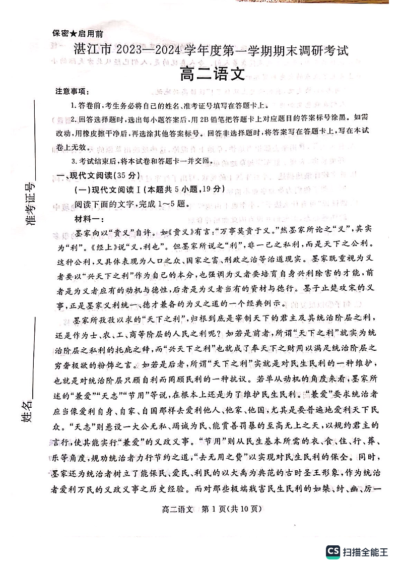广东省湛江市2023-2024学年高二上学期期末考试语文