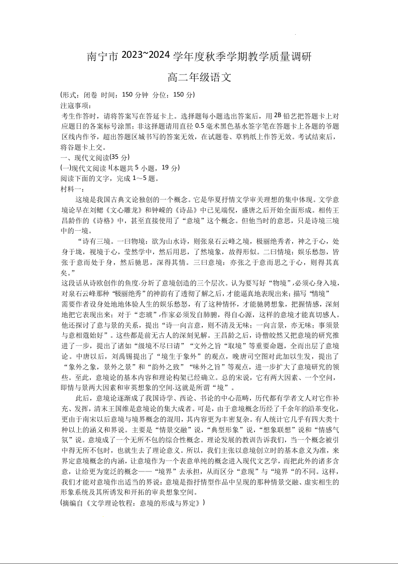 广西南宁市2023-2024学年高二上学期期末联考语文