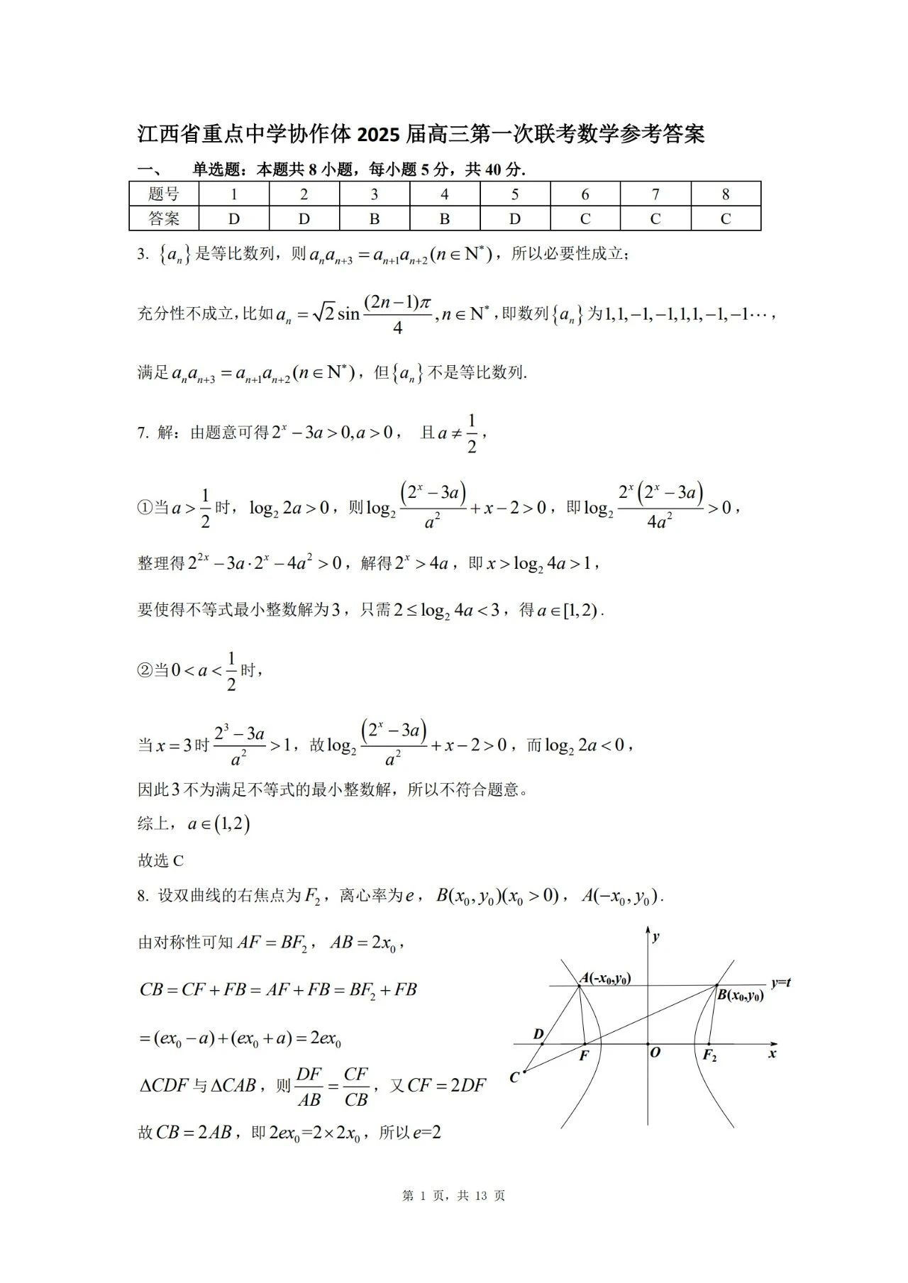 江西省重点中学协作体2025届高三下学期第一次联考数学答案