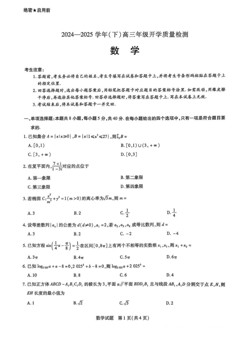 山东省“天一大联考·齐鲁名校教研共同体2025届高三年级开学质量检测数学答案