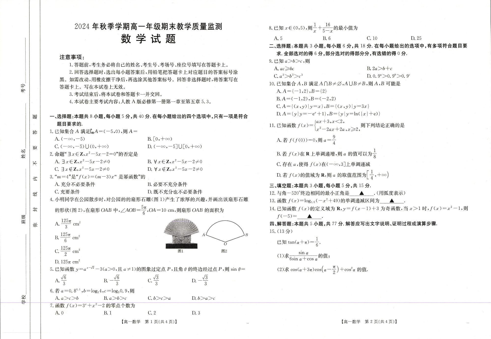 广西壮族自治区崇左市2024-2025学年上学期1月高一期末考试数学