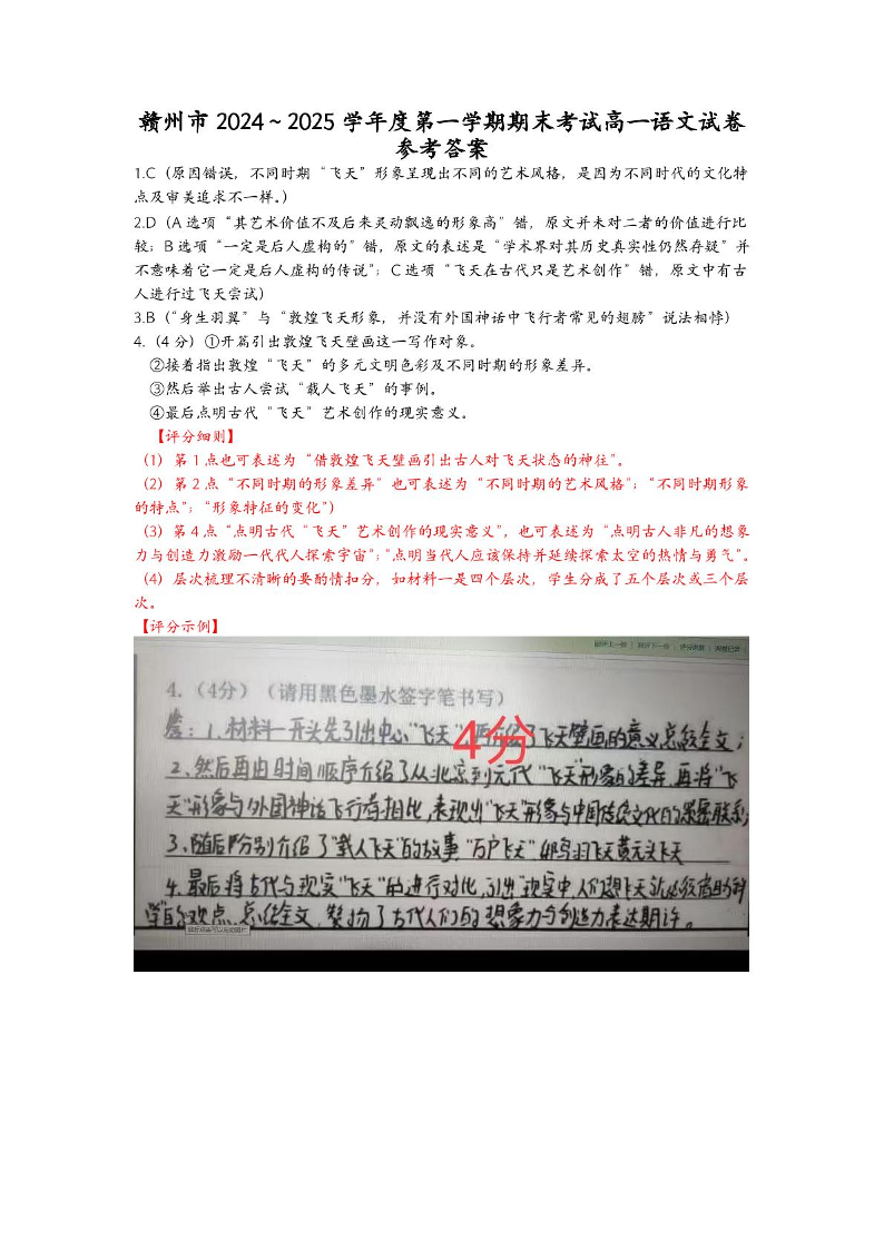 江西省赣州市2024-2025学年上学期1月高一期末考试语文评分细则