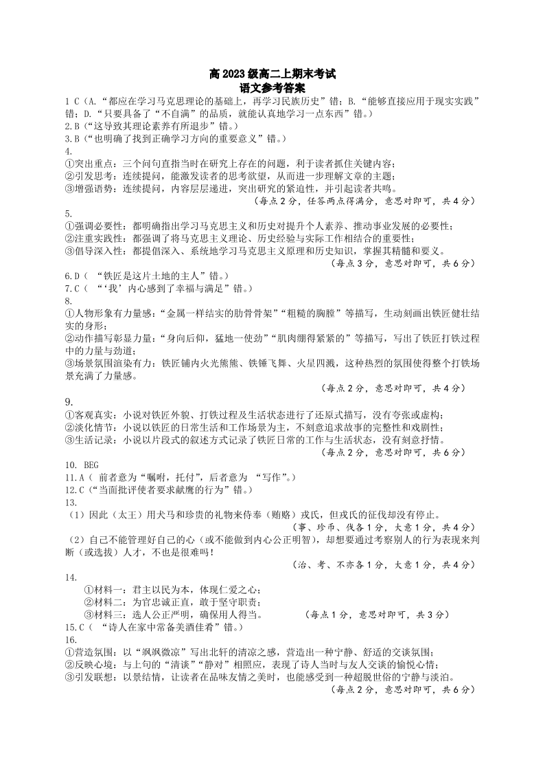 四川省绵阳市2024-2025学年上学期1月高二期末考试语文答案