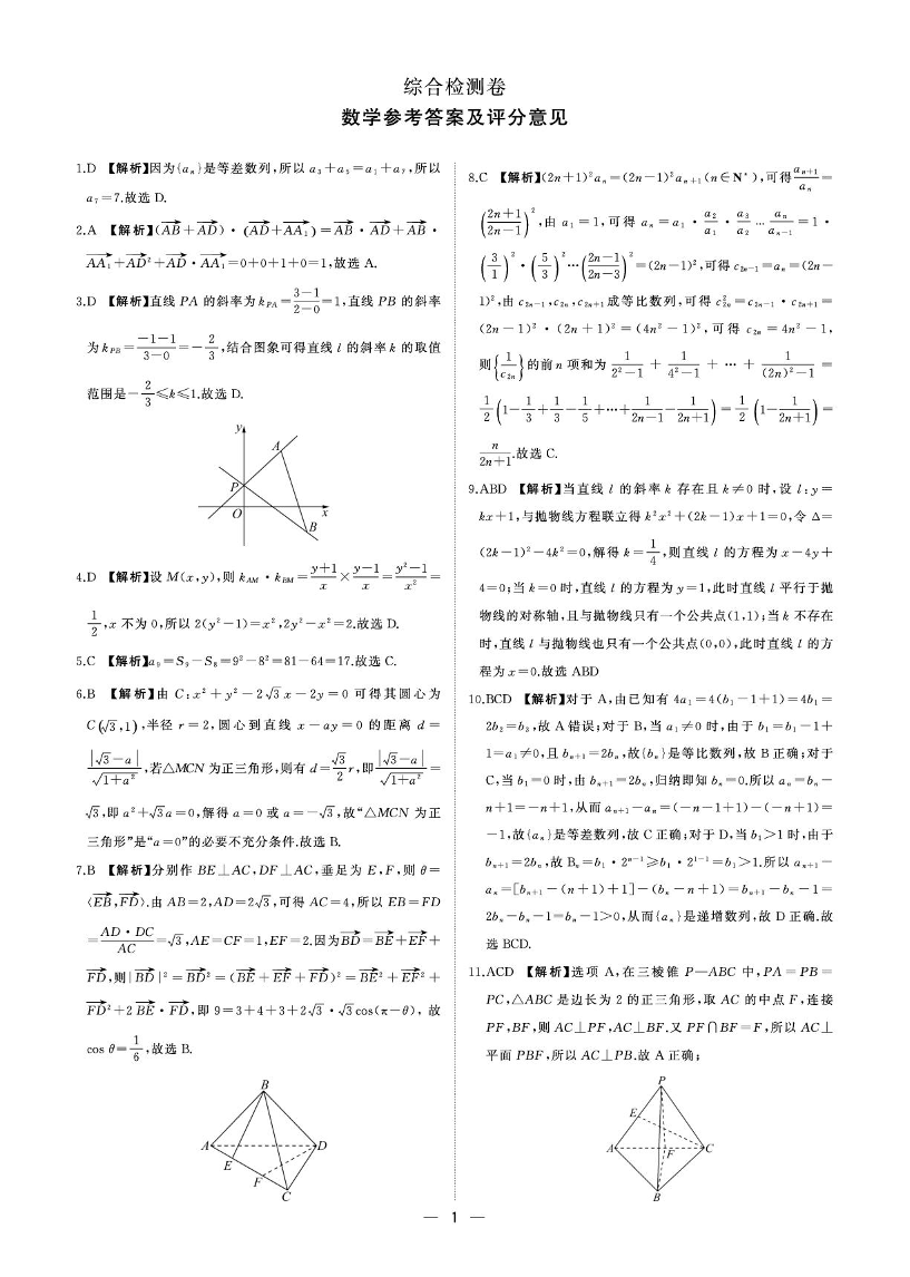 黑龙江省龙东地区2024-2025学年上学期高二期末考试数学答案