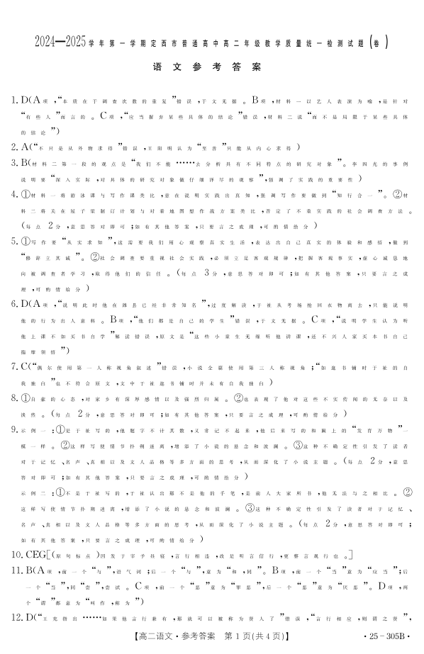 甘肃省定西市八校2024-2025学年上学期1月高二期末考试语文答案