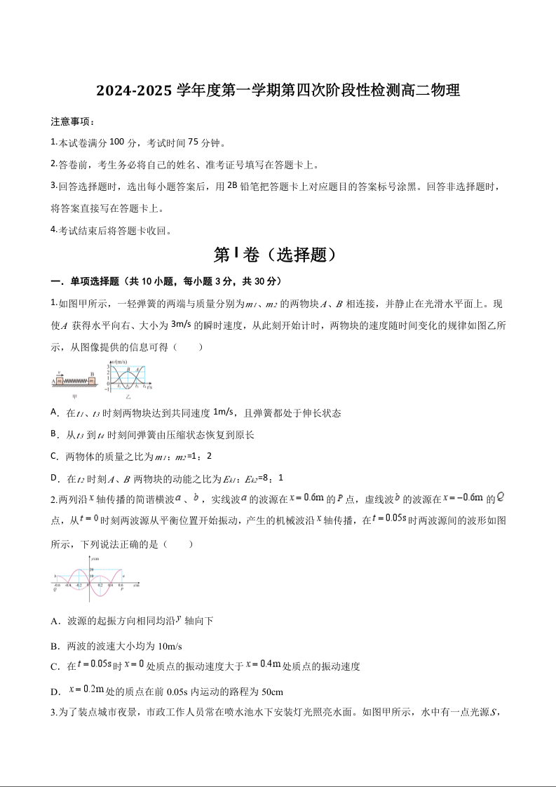 陕西省西安市区域2024-2025学年上学期高二第四次阶段性检测物理+答案