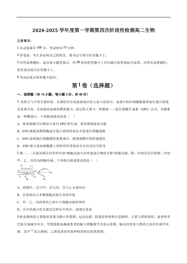 陕西省西安市区域2024-2025学年上学期高二第四次阶段性检测生物+答案