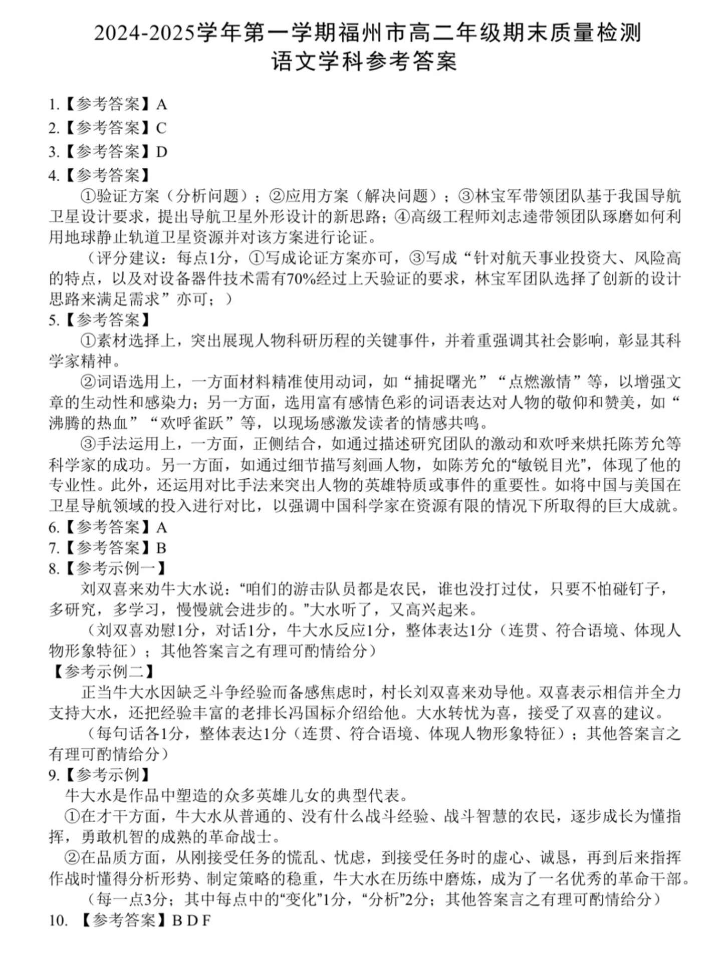福建省福州市2024-2025学年上学期高二期末考试语文答案