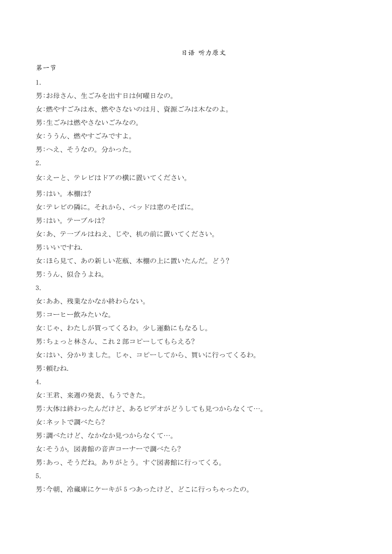 湖北省圆创高中名校联盟2025届高三第三次联合测评日语听力原文