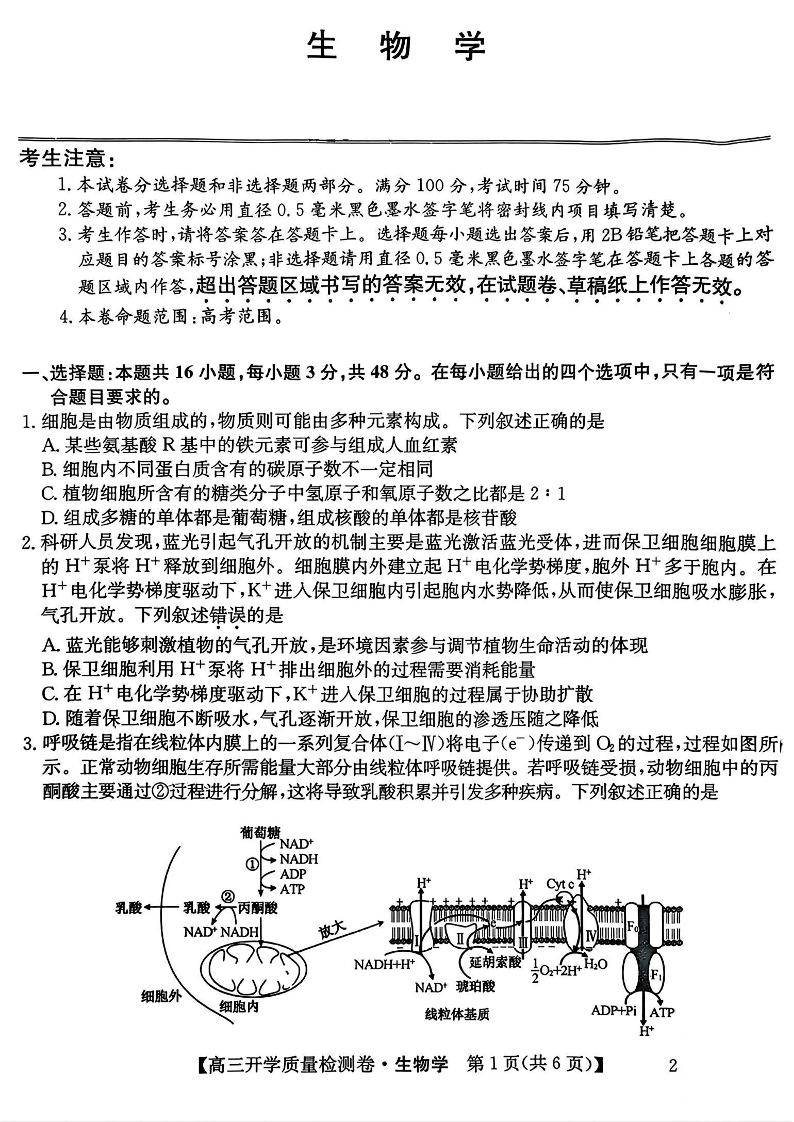 山西省部分学校2025届高三下学期2月开学质量检测生物+答案