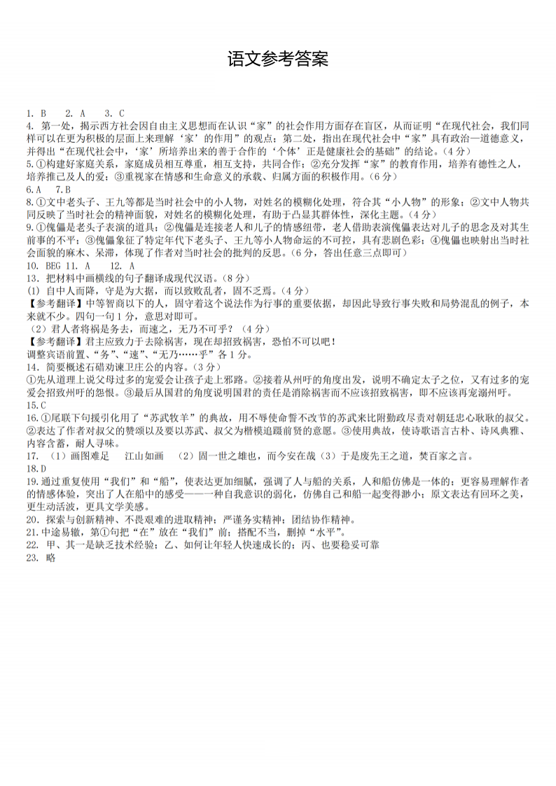 江苏省南京市六校联合体2024-2025学年下学期2月高三调研考试语文答案
