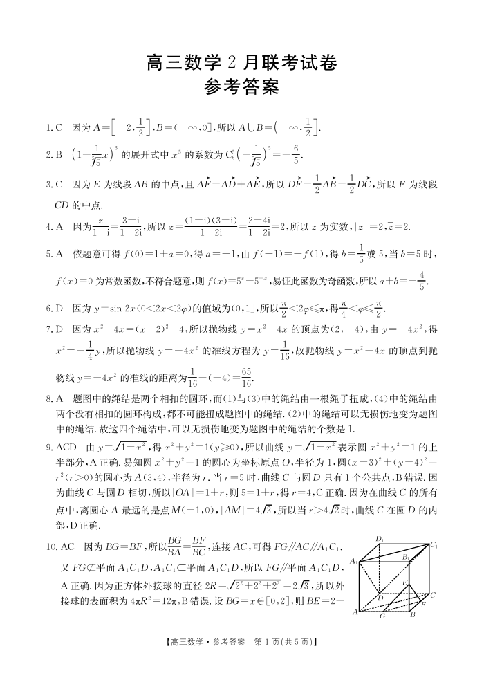 福建省宁德市区域高中2024-2025年下学期2月高三开学考试数学答案