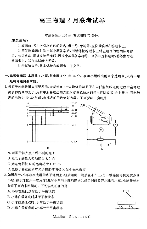 福建省宁德市区域高中2024-2025年下学期2月高三开学考试物理