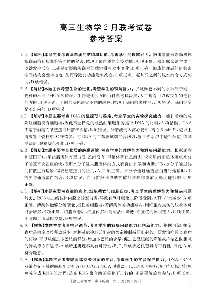 福建省宁德市区域高中2024-2025年下学期2月高三开学考试生物答案